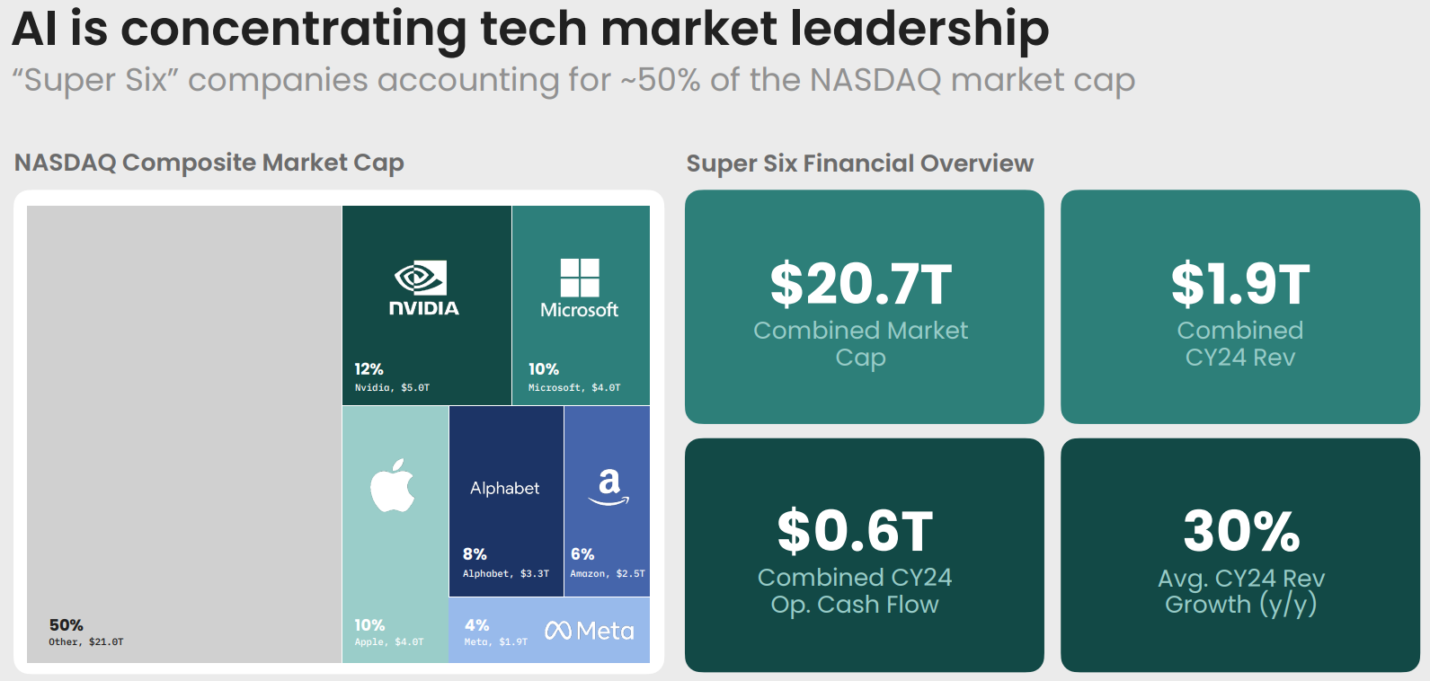 However the dominance of BigTech in market cap compared to all other companies continues to increases in the AI boom, even while the tech has somewhat dubious ROI and adoption rates so far.
