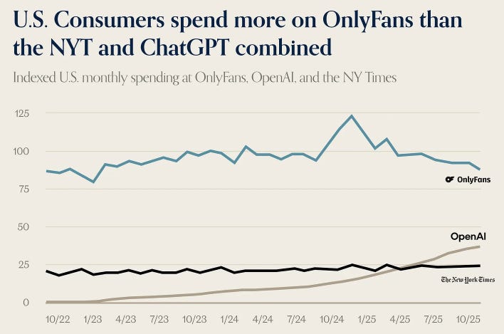 But…if AI was a big thing why are consumers spending more on OnlyFans, than OpenAI and NYT combined?