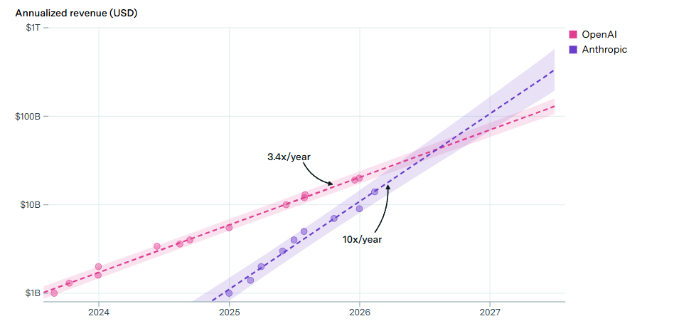 Anthropic Growing Revenue 3x Faster than OpenAI in 2026