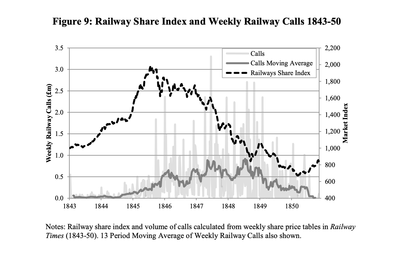 Source: Gareth Campbell, “Deriving the Railway Mania,” Financial History Review 20, no. 1 (2013): 1-27, https://doi.org/10.1017/S0968565012000285