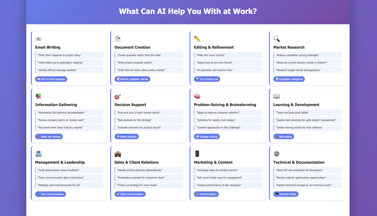 Most of my content is about using AI to get an edge at work. If you want ideas, from practical workflows to simple automations you can build, you can start here or check out my platform where I share resources and guides that fit any role and any level.