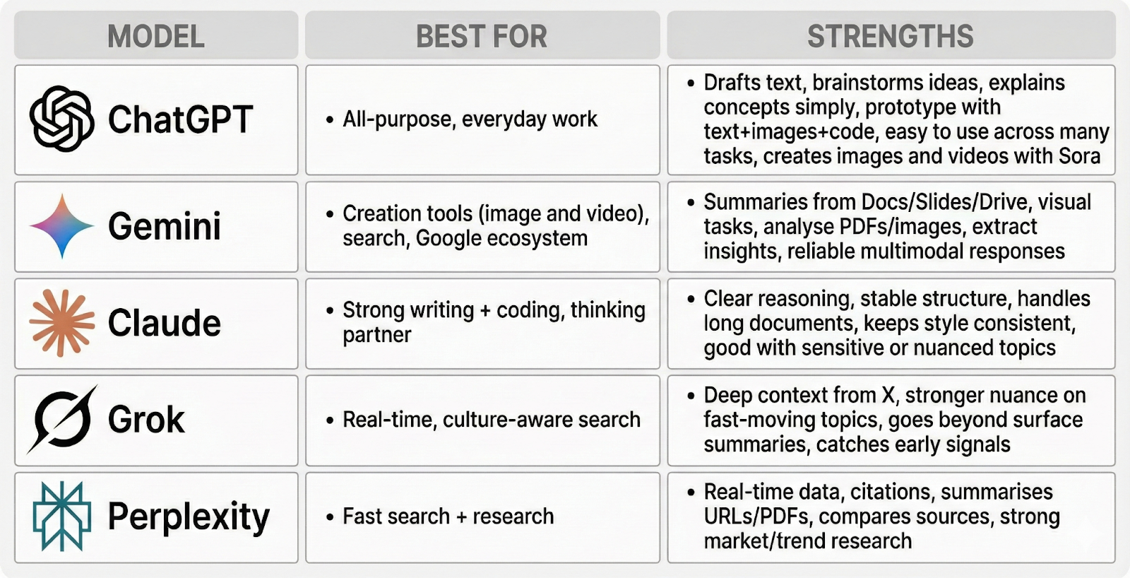 If you are not deep in the Google ecosystem, my next picks are Claude or ChatGPT. Both are strong general-purpose tools and anything you learn with one of them will transfer easily to the others.