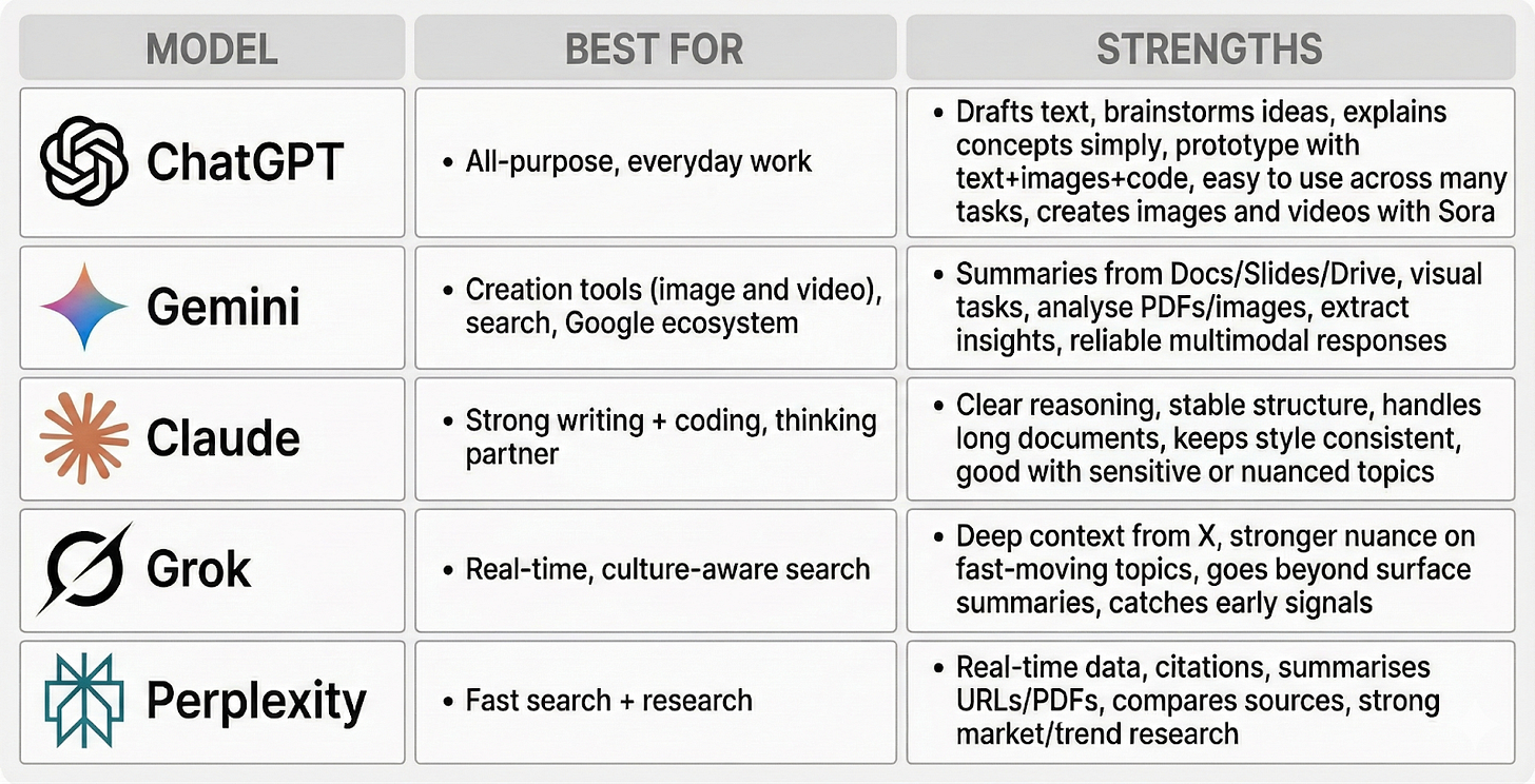 When you’re new to AI, the first instinct is usually to overthink which model to pick. That part doesn’t matter as much as people think. It’s better to choose one solid general-purpose model and go all in. Gemini, Claude, or ChatGPT all work fine for that.