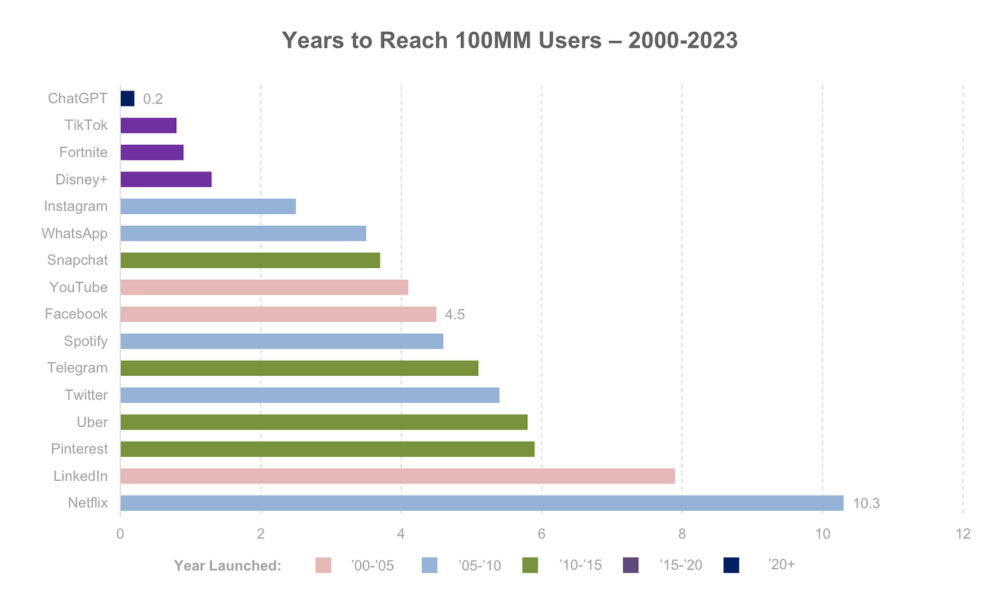 The difference is that AI became much more well-known since ChatGPT launched in November 2022, and it’s now used by about 10% of the world’s adult population. Which is the fastest adoption we’ve ever had for any technology.