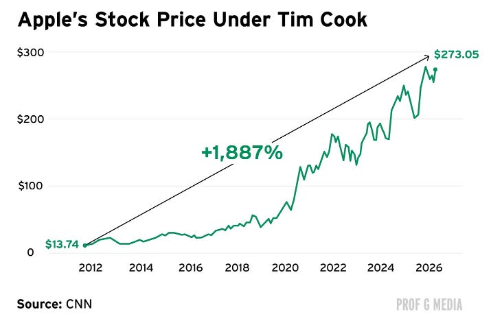 Steve Jobs was a tough act to follow but Tim Cook did as well as anyone could have expected. Let’s give credit where credit is due though, Tim Cook’s legacy is being cemented as one of the most successful corporate stewardships in history. Essentially, Cook transformed Apple from a "disruptive hardware company" into a resilient, $4 trillion global powerhouse. Take a bow.