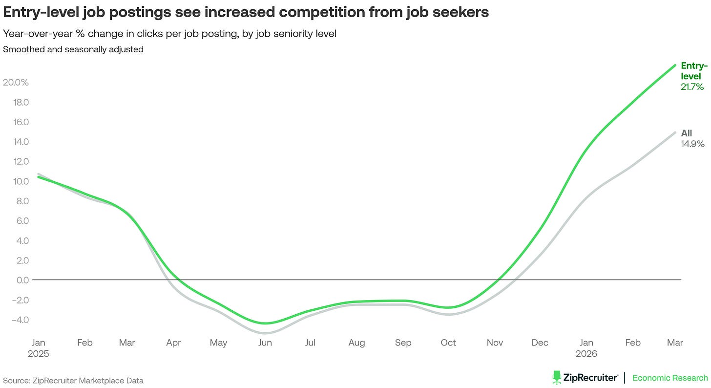 Their Graduate repot insinuates that Grads fear AI is limiting entry-level jobs, and most schools aren’t preparing them for it. This is making graduate younger GenZ more adaptable and possibly more entrepreneurial.