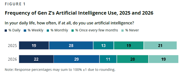 Just Over 1 in 5 GenZ Americans Feel obliged to use AI Daily