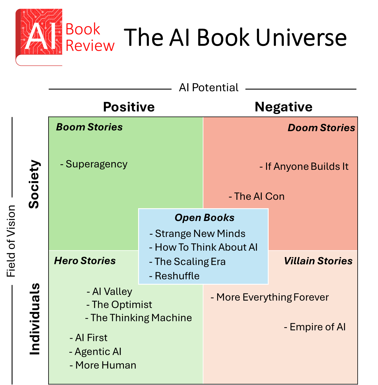 The goal is to do this differently. There are obviously other sources of book reviews. But by obsessing about AI books, I want to provide a resource that tracks the debate over time and across authors: How are leading writers thinking about AI? How do they differ? How is the debate changing? What are the gaps? What is the big picture?