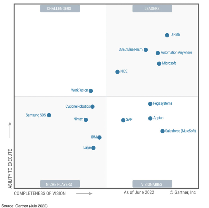 Gartner’s Magic Quadrant for RPA in July, 2022