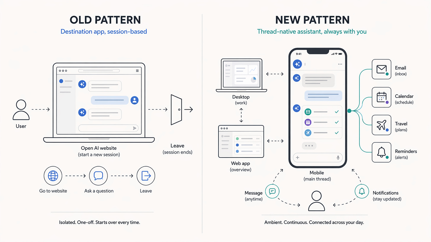 It is not just another place to chat with AI. It is an early glimpse of AI moving into the threads, devices, and routines people already use.